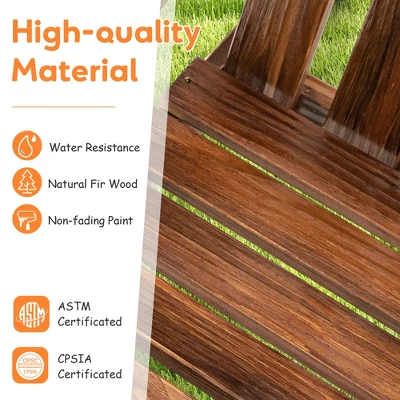 - High-quality Fir Wood: Crafted from natural fir wood, this Adirondack chair features resistant to heat and deformation. Additionally, coated with a non-fading paint, you can leave it outside for a long time without worrying about rotting or color fading.