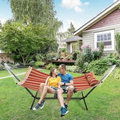 Up to 2 adults can have a rest on the hammock stand at the same time