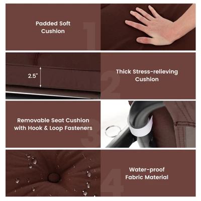 - Cozy Sitting Experience: Designed with comfort in mind, the porch swing is fitted with thick stress-relieving padded soft cushion to free you from the the fatigue of work. Besides, the water-proof fabric material allows you to enjoy your drink on it without worrying about spilling.