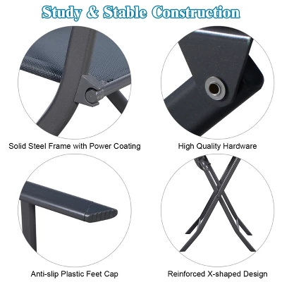 Steel textilene frame provides a sturdy foundation for this furniture set