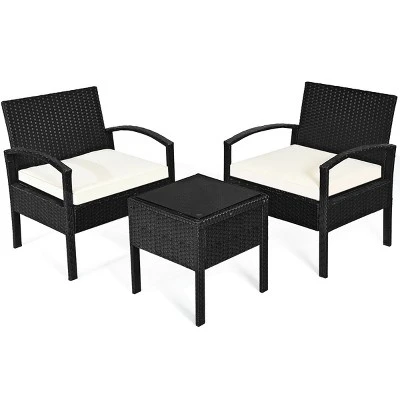 - Durable Rattan & Sturdy Steel Frame: Made of high-quality PE rattan and steel, this patio conversation set has strong toughness and superior load-bearing performance, which is not easy to break after long time use. Both table and chairs are equipped with anti-skid footpads, which enhance the overall stability while not easy to scratch the floor.