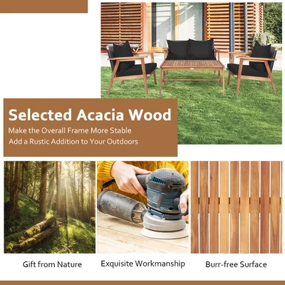 Make your outdoor space look more rustic with this 4-piece outdoor acacia wood furniture set!