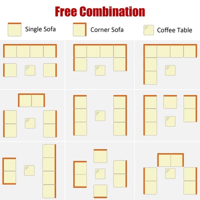 - Free Combination: This 7-piece outdoor patio furniture set includes 1 practical coffee table, 2 corner sofas and 4 single sofas, which allows you to change the position and combination of them according to your different needs. No matter for gathering around, chatting or taking a nap, this outdoor patio set will be the perfect choice.