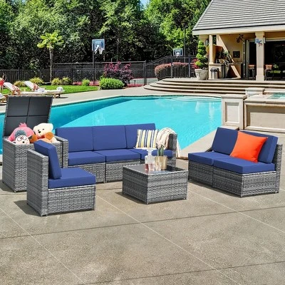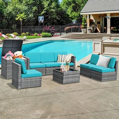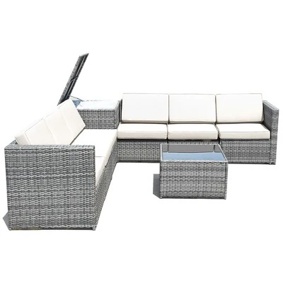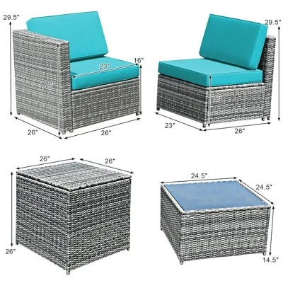 Including 6 sofas, 1 storage box, 1 coffee table, 6 seat cushions and 6 back cushions