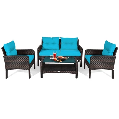 - Free Combination Sofa Set: This 4 piece rattan patio furniture set includes two single sofas, one loveseat and one coffee table that can accommodate 4-6 persons with ease and comfort. Even better, the lightweight sectional sofa can flexible using as per your needs, and great for backyard, porch, garden and poolside.