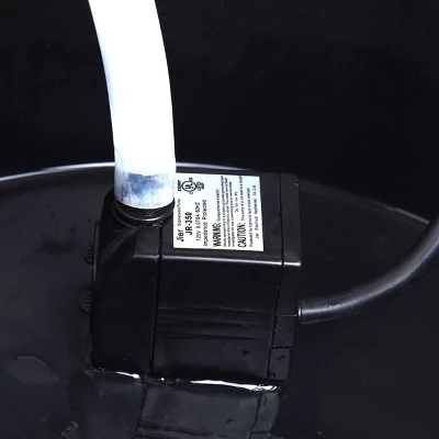 This our new wishing well fountain, is an ideal addition to your backyard, patio or garden. The solid fir wood construction with an attractive burnt finish is built to withstand the weather, and includes corrosion-resistant stainless steel hardware. This round wishing well bucket with plastic liner acts as the outlet for pumped water to be released in fountain style. With UL certified 120V electric pump with a 300 liter-per-hour flow rate brings water back up from the wishing well tank to keep the water flowing. You can control the flow rate by a black knob. Simply plug it in and fill with water, it will work as you desired. Don’t hesitate to buy it now