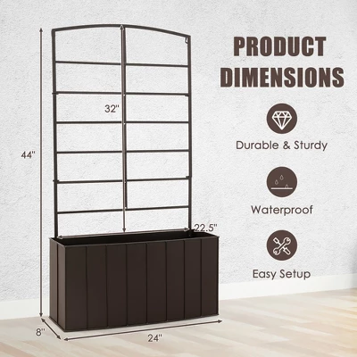 - 2-in-1 Climbing Planter Box: This 2-in-1 trellis planter is designed to allow you to grow or display plants from the bottom up. The upper trellis provides perfect growth environment for vine and climbing plants and can be used to hang potted plants. The bottom huge planter area provides ample space for growing plants in planter box.