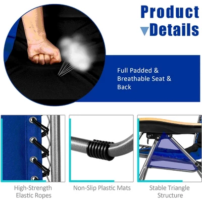 This heavy-duty lounge chair features a triangular support structure, which offers excellent stability for safe load-bearing. The reclining angle of the chairs can be adjusted at any angle from 0-170 degree. You can adjust to your most comfortable position whether lying or sitting. Ergonomic designs such as padded seat and back, a detachable pillow and curved armrests will provide you with extreme comfort and relieve stress. Whether you are camping or enjoying leisure time in your own yard, you are sure to relax with this zero gravity lounge chair.