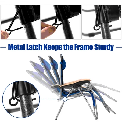- Lockable Reclining System: Our lounge chair can be stretched from vertical position to the maximum angle of 170 degree with smooth glide, providing you with zero-gravity comfort. Locks on both sides can keep the angle in place and meet your needs while you are fishing, relaxing, or napping.