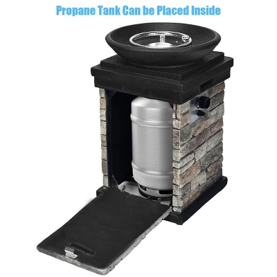 - Considerate Design: The high quality burning fire bowl column weigh in at 70 pounds. The body of it is equipped with holes to facilitate the movement of it. And the door of fire pit also comes with hole for opening and change 20lbs propane tank easily. Plus, a PVC rainproof cloth cover can protect your stove from bad weather.
