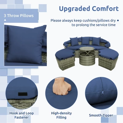 This patio round daybed with retractable canopy is the perfect addition to any outdoor living space.