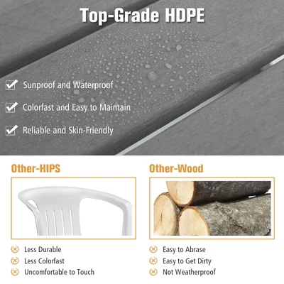 - Weatherproof HDPE Material: Composed of top-grade HDPE, this patio rocking chair is much more weatherproof than other wooden chairs. It can withstand long-time sun or rain exposure and won’t easily fade. Moreover, the HDPE material is also skin-friendly and easy to maintain.