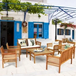 Costway 8PCS Patio Rattan Furniture Conversation Set Cushion Sofa Table Garden TurquoiseNavyBlackRed